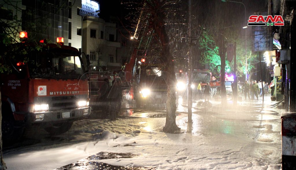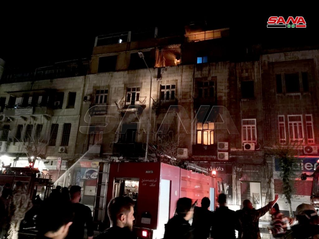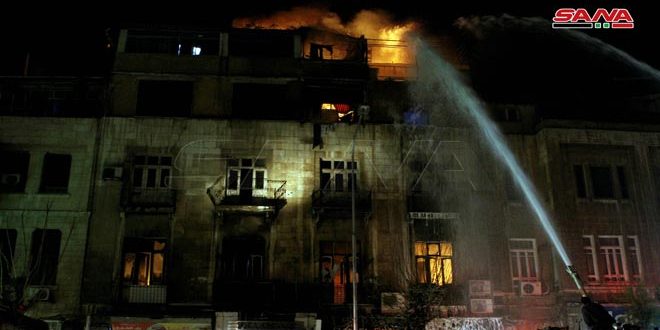 أخمد عناصر فوج إطفاء دمشق الليلة حريقاً ضخماً اندلع في مبنى سكني مؤلف من أربعة طوابق بشارع الباكستان.