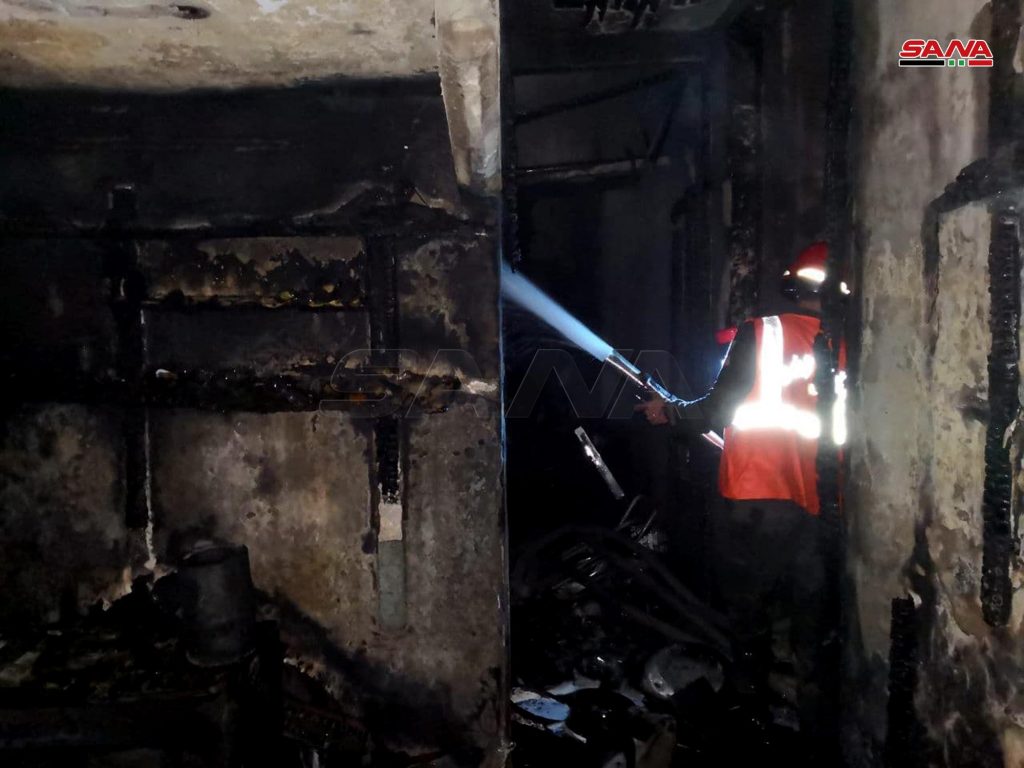 وكان مراسل سانا ذكر في وقت سابق أن فرق الإطفاء تمكنت من إخماد الحريق الذي نشب في المبنى مشيراً إلى أن فرق الإطفاء بالتعاون مع الكوادر الطبية والهلال الأحمر العربي السوري أجلت عدداً من العالقين داخل البناء السكني قبل أن تتمكن من السيطرة على الحريق وإخماده بشكل كامل.