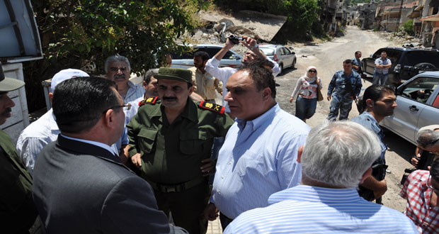 وتفقد محافظ حمص عددا من المرافق الحكومية المتضررة “مجلس مدينة الحصن والمركز الثقافي ومخفر الشرطة” واطلع على حجم الدمار والخراب الذي تعرضت له هذه المنشآت وغيرها مشيرا الى انه تم اثناء الجولة فتح طريق الحصن السياحي وازلة السواتر الترابية التي كانت تعيق المرور.