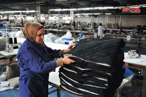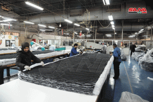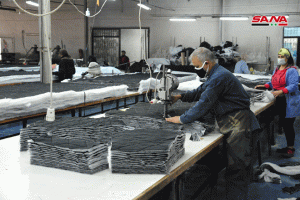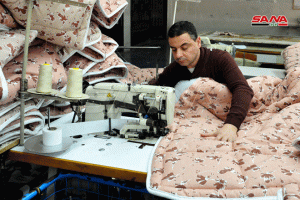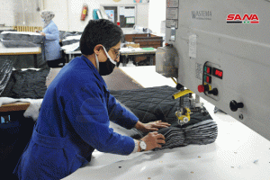 راتب عزام معاون المدير العام للشركة لفت إلى التنوع في إنتاج الشركة من الألبسة الجاهزة واللحف والشراشف والملاحف وهي تحتوي على أربعة أقسام أساسية هي المخبر والتكنولوجيا والخياطة والانهاء والتعبئة والتغليف.