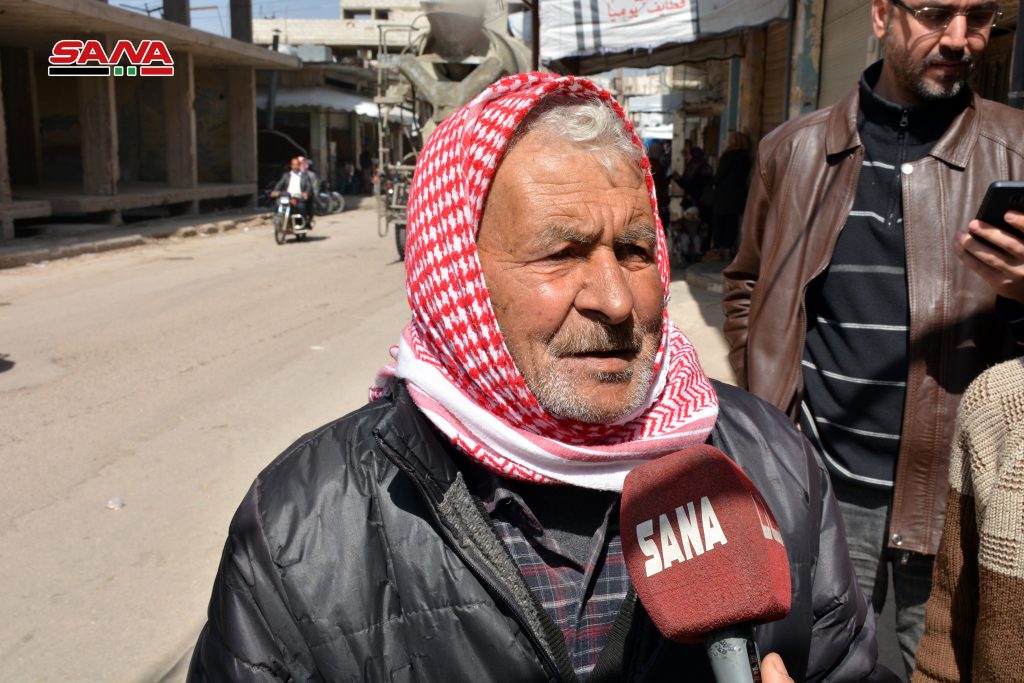 المزارع محمد الحبيب يعمل اليوم في حقله على خدمة أشجار الزيتون قال إنه “مع عودة الأمان إلى مدينتنا عاد الفلاحون إلى أرضهم التي منعوا عنها طيلة فترة وجود التنظيمات الإرهابية يزرعون بجد لينتجوا محاصيلهم التي هي مصدر رزقهم” مؤكدا تمسكه بارضه ودعا كل من هجر للعودة الى بلده.