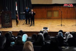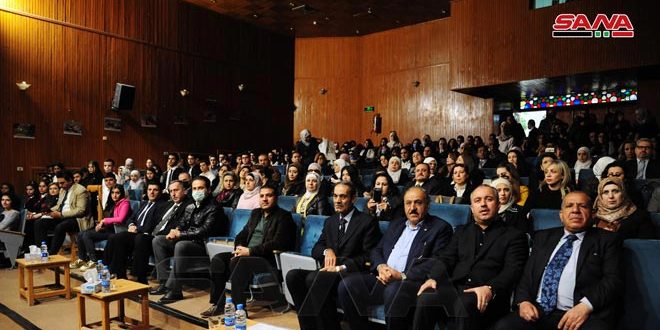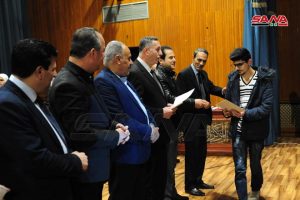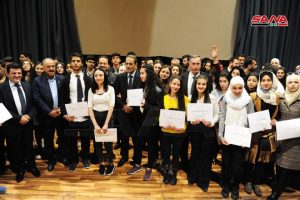 بمناسبة عيد المعلم كرمت اليوم نقابة معلمي دمشق 106 من الطلاب المتفوقين من أبناء المعلمين والشهداء في المركز الثقافي بكفرسوسة.