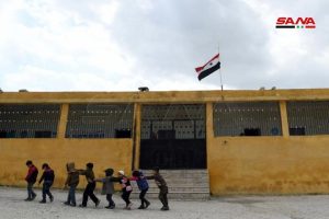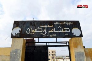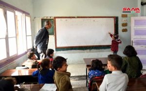 وبين مدير المدرسة ياسر العبدو أنه بالتزامن مع عودة الأهالي للمدينة تم العمل على ترميم المدرسة وتأمين مقاعد الدراسة والكوادر التعليمية والبدء بتدريس التلاميذ داعياً الأهالي للعودة إلى منازلهم وإرسال أطفالهم للمدارس لإتمام تعليمهم وهذا ما أكدت عليه المعلمة هويدا معروف منوهة بإقبال الطلاب على العودة الى المدارس وتجاوبهم مع المناهج الجديدة.