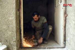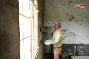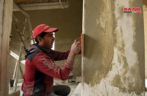 وفي أحد منازل المدينة انطلقت ورشات العمل للقيام بأعمال الترميم وإجراء الإصلاحات اللازمة للأجزاء المخربة جراء الإرهاب حيث لفت أبو عمر إلى قيام العمال باستبدال شبكات الكهرباء والمياه وصيانتها وبناء الجدران المهدمة استعدادا لعودة صاحب المنزل والسكن فيه من جديد.