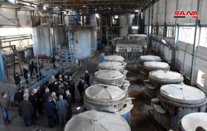 اطلع وزير الصناعة زياد صباغ اليوم على واقع عمل عدد من الشركات والمعامل التابعة للوزارة في محافظة حماة كما التقى عدداً من المزارعين ورؤساء الروابط والجمعيات الفلاحية لمناقشة الواقع الزراعي.
