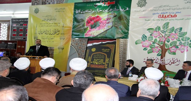 بدوره بين مدير مجمع الشيخ أحمد كفتارو الشيخ “شريف الصواف” أهمية التضحية والشهادة في سبيل الدفاع عن العقيدة والوطن منوها بما قدمه أبناء الوطن من تضحيات في سبيل إعادة الاستقرار إلى ربوعه.