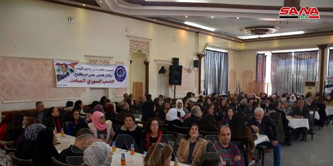 حضر التكريم الذي تخللته عروض فنية ومسرحية لفرقة المسرح العمالي محافظ حمص المهندس بسام بارسيك وقائد شرطة حمص اللواء محمد الفاعوري.