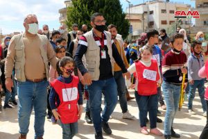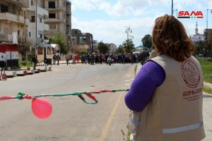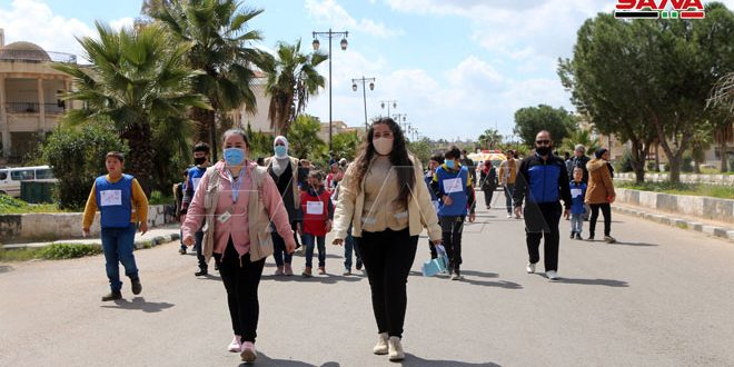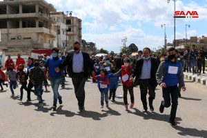 وانطلق الماراثون من دوار موسى بن نصير في مدينة درعا باتجاه متنزه البانوراما على المدخل الشمالي للمدينة.