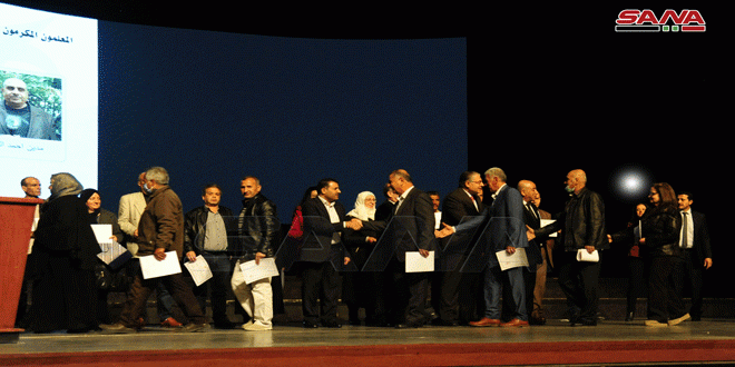 وتخلل حفل التكريم عرض 11 لوحة فلكلورية راقصة لمختلف المحافظات السورية وفيلم قصير عن المكرمين ومقطوعات موسيقية وطنية لأوركسترا الوزارة بقيادة المايسترو كمال سكيكر.