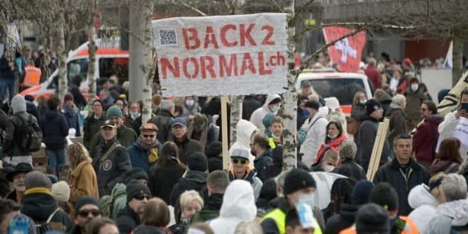 وقال منظمو الاحتجاج في بيان” إن الحكومة السويسرية أخذت البلاد رهينة منذ أكثر من عام , نحن ذاهبون إلى ليستل لنقول للناس حان وقت إنهاء التدابير التي تعتبر بلا جدوى اذ أنه من أجل حماية واحد بالمئة من الأشخاص المعرضين للخطر يدمرون حياة 99 بالمئة من السكان”.