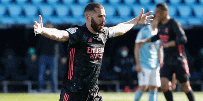 وذكرت شبكة سكاي سبورتس أن بنزيما سجل هدفين في مباراة فريقه مع سيلتا فيجو ليرفع رصيده إلى 186 هدفا في الدوري من أصل 373 مباراة ليعادل بهذا رقم كارلوس سانتيانا كرابع أفضل هداف في تاريخ ريال مدريد.