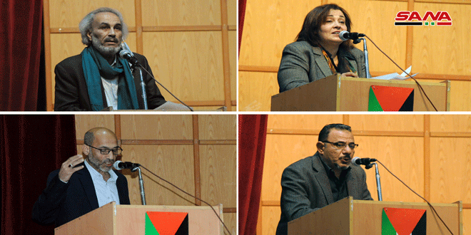 أدارت المهرجان ليلى صعب رئيسة المركز الثقافي التي أوضحت أن فلسطين لم تحضر في قصائد أبنائها فقط بل ظلت جرحا نازفا في قلب شعرائنا مستذكرة الشاعر الدمشقي نزار قباني الذي شغلته فلسطين وكانت حروفه ترصد كل متخاذل في قضيتها.