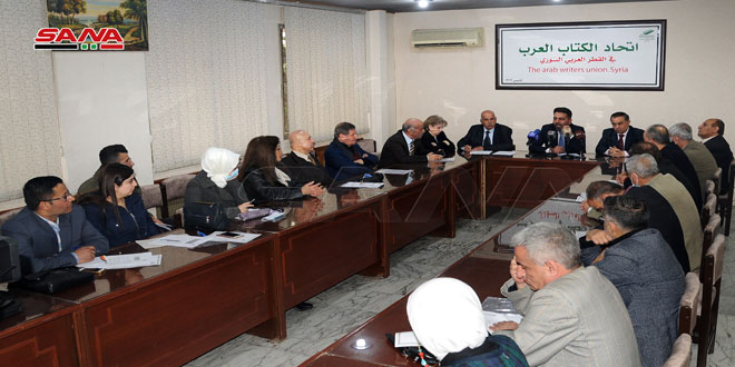 وبين الحوراني أن الاتحاد أطلق مشروع توثيق بطولات الجيش العربي السوري والشعب في مواجهة الإرهاب إضافة إلى طباعة الكتب التي تصل إلى الاتحاد من الأسرى في سجون الاحتلال الصهيوني مؤكداً دور الوسط الأدبي والثقافي في مواجهة مشاريع التطبيع مع العدو.