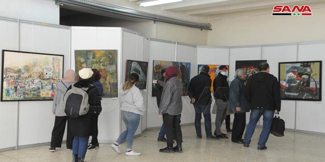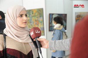 رئيسة دائرة المعارض والمقتنيات في مديرية الفنون النحاتة رنا حسين لفتت إلى تفاعل طلاب الكلية مع المعرض والذي فتح أمامهم عدة تساؤلات حول لوحات الفنانات المعروضة.