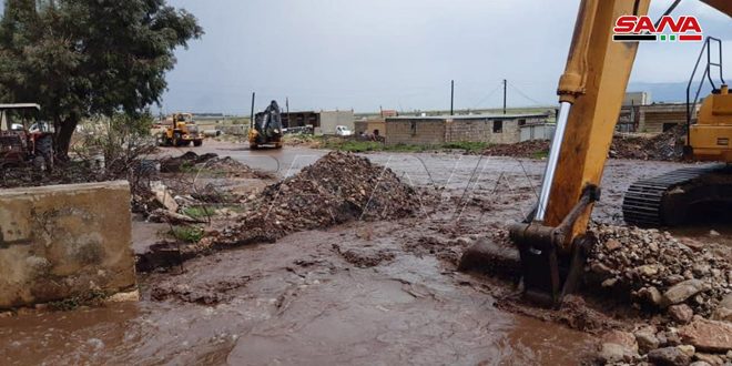 كما أوضح أن آليات البلدية بدعم من آليات محافظة حماة ومديريتي الزراعة والخدمات الفنية بدأت منذ الصباح بأعمال تسليك وفتح العبارات والطرق وحماية القسم الأكبر من منازل المواطنين وأراضيهم وتحويل مجرى المياه عنها مشيراً إلى أن حل المشكلة يكمن في إنشاء قناة بيتونية صندوقية في المنطقة تحمي البنى التحتية ومنازل وممتلكات الأهالي.