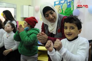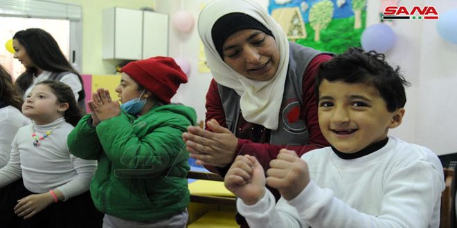 بدورها ولاء مرعي معاون مدير الشؤون الاجتماعية والعمل بدمشق أشارت إلى أنه انطلاقاً من أن الأسرة هي البنيان الأساسي للمجتمع ونواة للتعاطي الاجتماعي ووفقاً لحملة الأسرة السورية التي أطلقتها وزارة الشؤون الاجتماعية والعمل مؤخراً تم افتتاح القاعة حيث سيتم تقديم خدمات حسية حركية للأطفال ذوي الإعاقة.