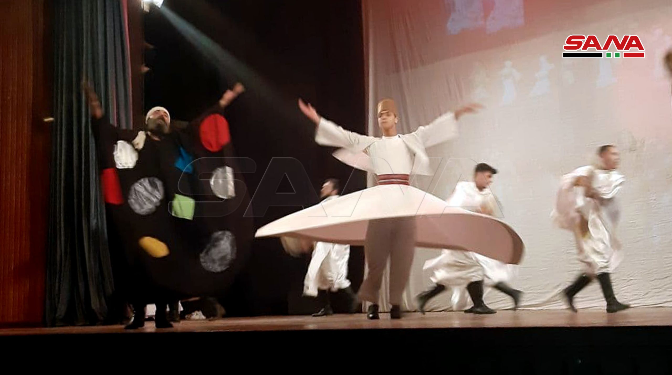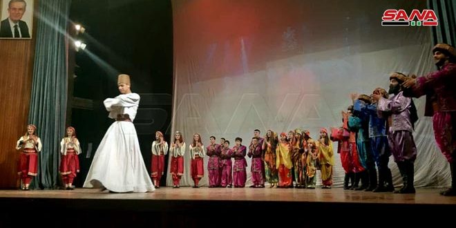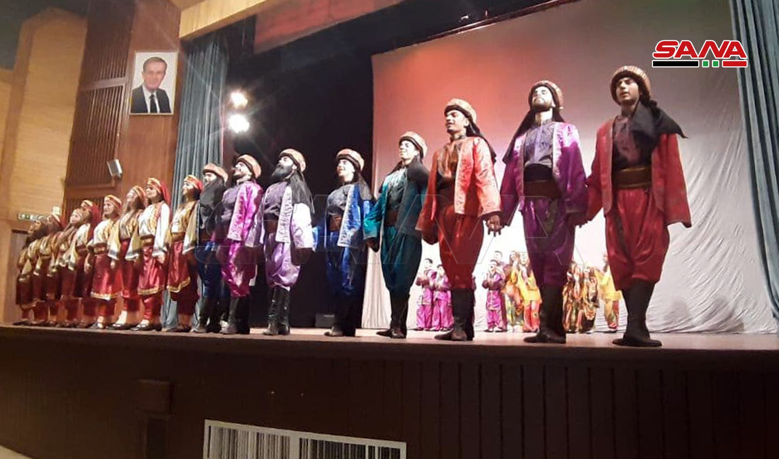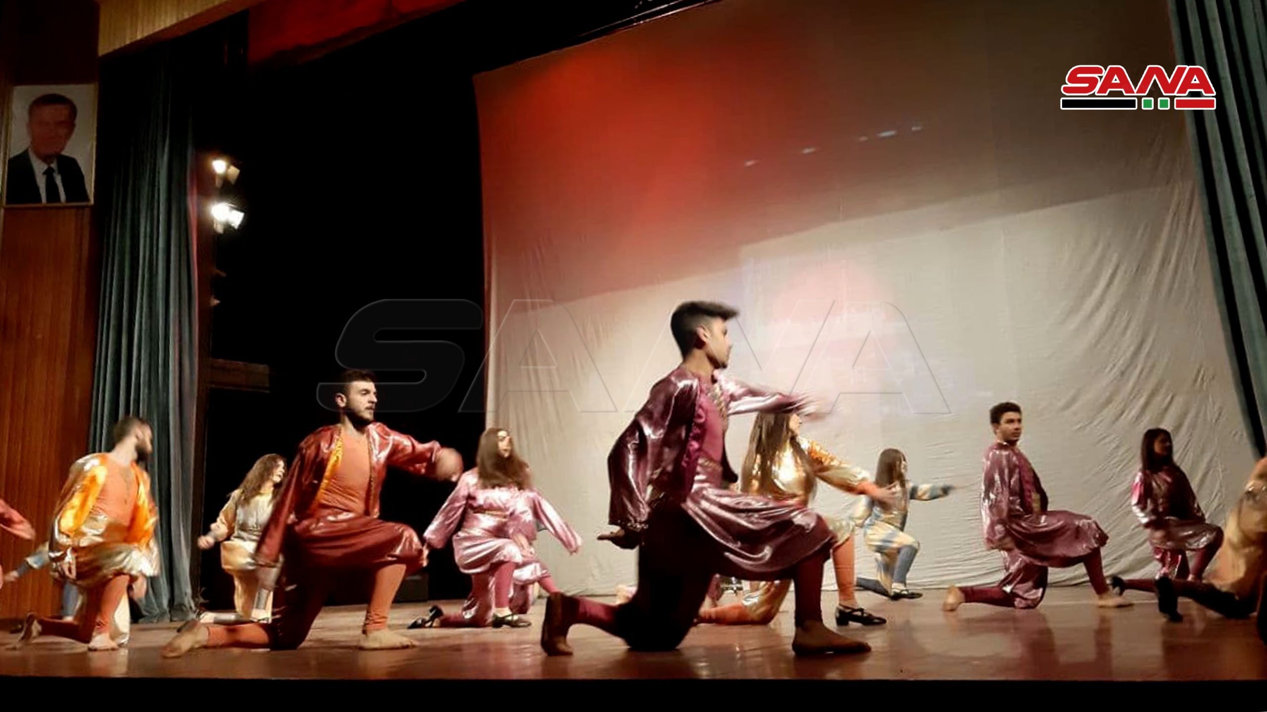 لوحات راقصة منوعة مستوحاة من الفلكلور السوري قدمتها فرقة أجيال للمسرح الراقص القادمة من دمشق ضمن عرضها المسرحي الراقص “فلكلورنا” على خشبة مسرح قصر الثقافة بحمص.
