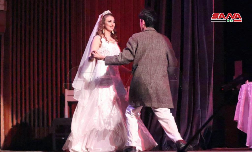 وقدمت بعد ذلك فرقة إشبيلية “نقابة المحامين” عرضاً مسرحياً لأنطون تشيخوف بعنوان “العرس” إخراج فهد الرحمون تناول فيه غياب القيم الإخلاقية في المجتمعات التي باتت تعيش المظاهر والقشور لتظهر على إنها من أصحاب الطبقات الفخمة والمخملية ما تسبب في فشل العرس ليشكل إسقاطا لما يعيشه شبابنا بسبب مغريات الحياة الكثيرة.