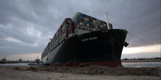 وكانت السفينة ايفر غيفن البالغ طولها 400 متر وطاقتها الاستيعابية 224 ألف طن علقت في الـ 23 من آذار الجاري في قناة السويس وسدت الممر المائي الذي يربط البحر المتوسط بالبحر الأحمر وتمر عبره نحو 12 بالمئة من التجارة البحرية العالمية.
