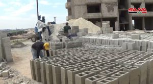 وللحفاظ على وتيرة إنجاز عالية للمشروع لإتمامه ضمن الفترة العقدية التي تبلغ 800 يوم أشار شعبان إلى العمل المستمر لتأمين المواد الأولية عبر إقامة 4 ورشات ضمن الموقع متخصصة بإنتاج البلوك وورشتين لقص وتنسيق القضبان الحديدية وعدة ورشات لأعمال النجارة إضافة إلى عدة آليات للحفر والترحيل كما يجري استجرار المواد البيتونية ذات المواصفات العالية من المجابل المركزية التابعة لفرع الشركة العامة للبناء.