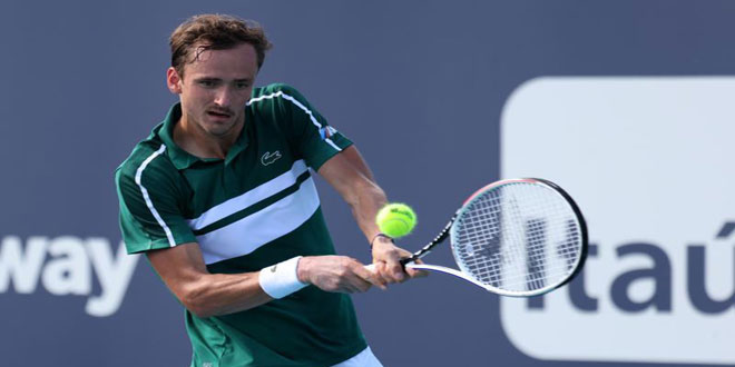 تأهل الروسي دانييل ميدفيديف إلى دور ثمن النهائي في بطولة ميامي المفتوحة للتنس.