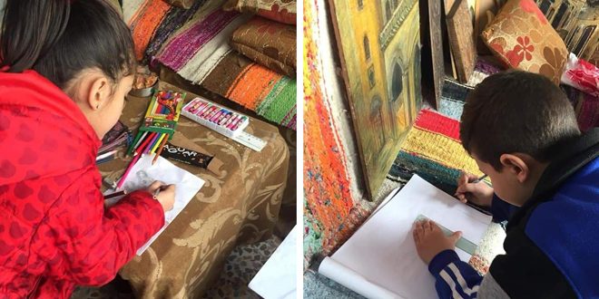 بالرغم من صغر أعمارهم إلا أن الأطفال المشاركين في ورشة الرسم والأشغال اليدوية التي أقيمت في مشغل الفنان أحمد رمضان العلي بحمص أبدوا تفاعلاً وقدرة على صنع الجمال من أشياء بسيطة.