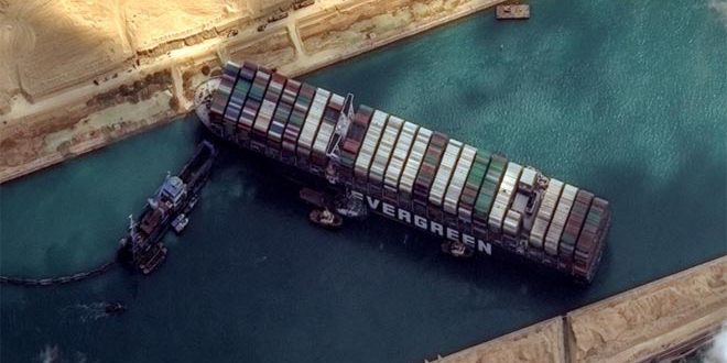 وعلقت إيفر غيفن البالغ طولها 400 متر وطاقتها الاستيعابية 224 ألف طن في الـ 23 من آذار الجاري في قناة السويس وسدت الممر المائي الذي يربط البحر المتوسط بالبحر الأحمر وتمر عبره نحو 12 بالمئة من التجارة البحرية العالمية.