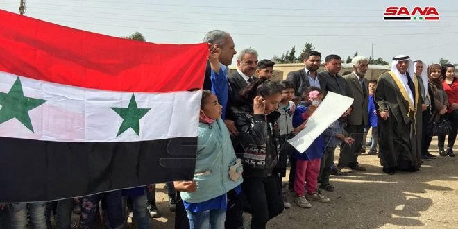 وأكد المشاركون في الوقفة رفضهم لكل أشكال الاحتلال محملين قوات الاحتلال الأمريكي ومرتزقتهم مسؤولية عدم استقرار المنطقة وسرقة ثروات سورية وحصار الأهالي.
