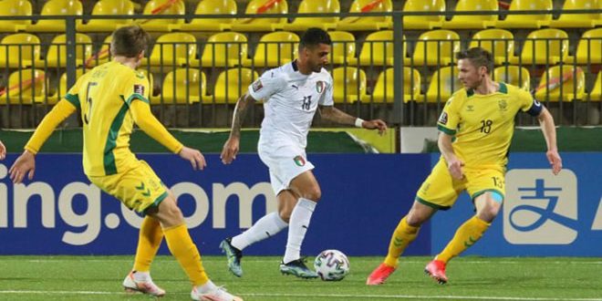 حققت إيطاليا فوزها الثالث في ثلاث مباريات بالجموعة الثالثة بتصفيات كأس العالم لكرة القدم 2022 بفوزها 2-صفر خارج أرضها على ليتوانيا .