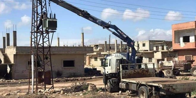 بالرغم من حجم الأضرار الكبيرة التي طالت المنظومة الكهربائية في حمص جراء الاعتداءات الارهابية إلا أن ورشات وكوادر الشركة العامة لكهرباء حمص بذلوا جهودا مضاعفة لتجاوز المصاعب والمعوقات لإعادة تأهيل المناطق المتضررة واعادة الخدمة للأهالي.