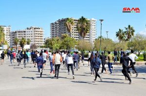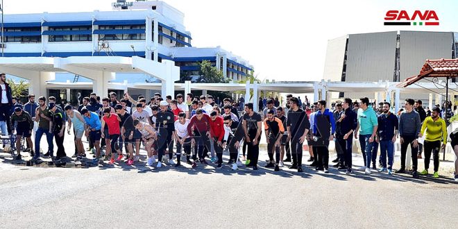 بمناسبة عيد الطالب العربي السوري نظم فرع الاتحاد الوطني لطلبة سورية بجامعة تشرين اليوم ماراتوناً رياضياً بمشاركة 150 طالباً وطالبة.