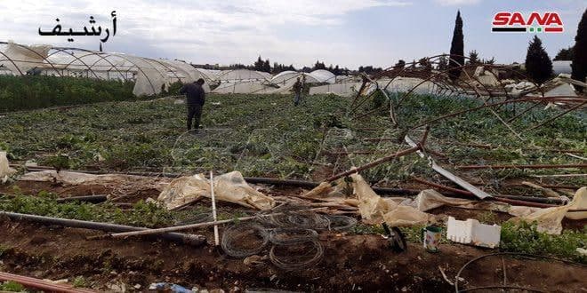 وكانت الزراعات المحمية في منطقة ابتلة في مدينة بانياس وسهل ميعار الغربي في ريف محافظة طرطوس تعرضت في شباط الماضي لأضرار تراوحت بين الضرر الكامل والجزئي جراء التنين البحري الذي ضرب المنطقة حينها.