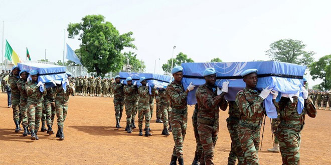 ونقلت وكالة الصحافة الفرنسية عن بعثة الأمم المتحدة مينوسما قولها في بيان اليوم إن “قوات حفظ السلام صدت هجوماً معقداً شنه العديد من الإرهابيين المدججين بالسلاح” مشيرة إلى مقتل أربعة من عناصرها كحصيلة مؤقتة إضافة إلى سقوط جرحى.