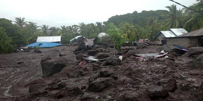 كما تسببت الفيضانات بدفن عشرات المنازل في الوحل بقرية لامانيلي وجرفت منازل وأنهار جسر في جزيرة أدونارا شرقاً كما انقطعت إمدادات الكهرباء وتوقعت وكالة الأرصاد الجوية هطول أمطار غزيرة ورياح قوية وأمواج عاتية في غضون أسبوع.