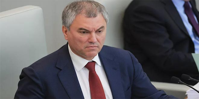 طالب رئيس مجلس الدوما الروسي فياتشيسلاف فولودين القيادة الأوكرانية بالكف عن تصعيد الوضع في منطقة دونباس والعودة فوراً إلى الالتزام الكامل باتفاقات مينسك قبل فوات الأوان.