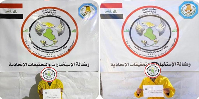 وأفادت وكالة الاستخبارات العراقية في بيان اليوم نقله موقع السومرية نيوز بأن مفارز وزارة الداخلية تمكنت من إلقاء القبض على إرهابيين اثنين مطلوبين وفق أحكام (الماده 4 إرهاب) لانتمائهما لتنظيم “داعش” كانا يخططان لتنفيذ عمليات اغتيال ضد أفراد القوات الأمنية في محافظة كركوك.