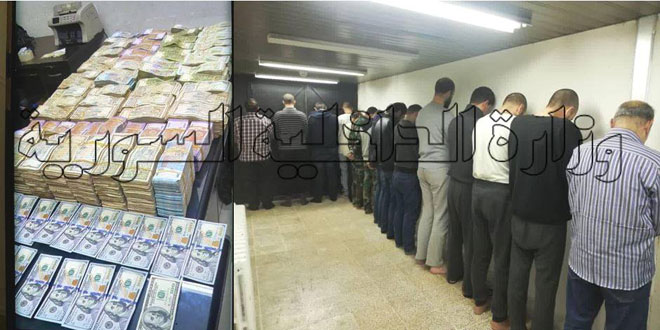 ولفتت الوزارة إلى اتخاذ الإجراءات اللازمة بحق المقبوض عليهم ليتم تقديمهم إلى القضاء المختص وتسليم المبالغ المصادرة إلى مصرف سورية المركزي أصولاً.