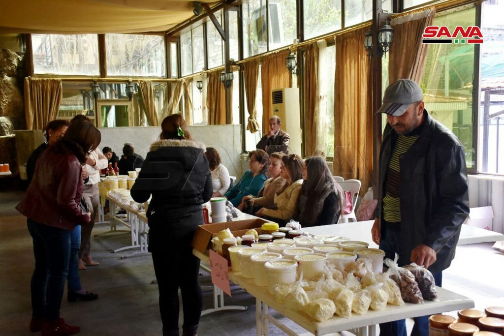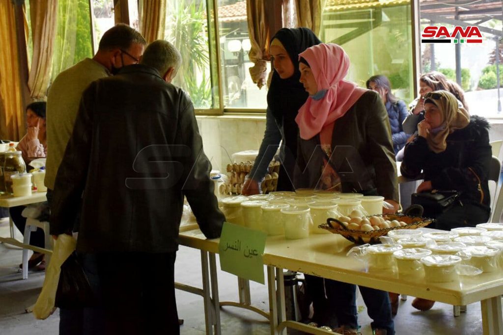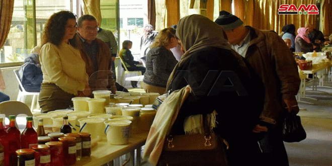 وبينت المهندسة منى محفوض رئيسة دائرة التنمية الريفية بمديرية الزراعة أن المعرض مستمر على مدى يومين ويضم تشكيلة واسعة من المواد التي تهم الأسرة فيما أشارت سهير رسلان مسؤولة سوق منتجات المرأة الريفية بمديرية الزراعة إلى الإقبال الكبير على المعرض لتسويق منتجات متعددة من مختلف الريف الحمصي كالحصرم والخل والتين المجفف والزبيب ودبس الرمان والزعتر.