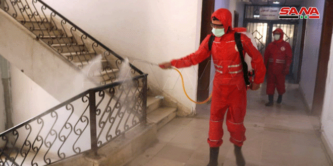 وذكر نائب رئيس المكتب التنفيذي لمحافظة دير الزور كنعان عبد الوهاب في تصريح لمراسل سانا أن المحافظة بالتنسيق مع فرع الهلال الأحمر العربي السوري وضعت خطة شاملة لتعقيم كل المؤسسات الحكومية والمدارس والمساجد والمرافق العامة بصورة دورية بهدف حماية المواطنين وتحقيق السلامة العامة مشيراً إلى أن الحملة تستمر ثلاثة أيام يتم خلالها تقسيم العمل إلى عدة قطاعات وتكليف الهلال الأحمر ومجلس المدينة ومديريتي الزراعة والتربية بتعقيم قطاع محدد.