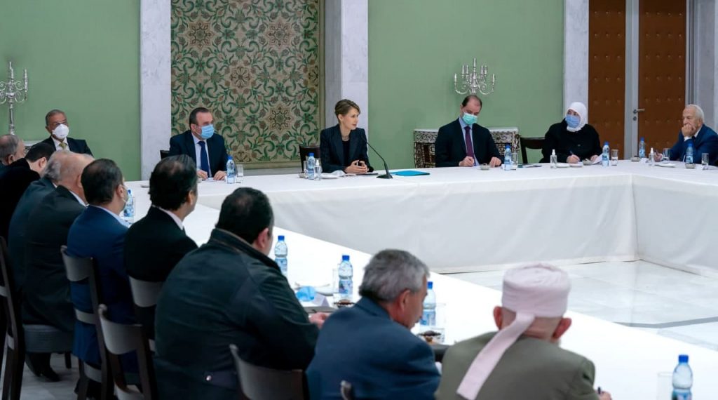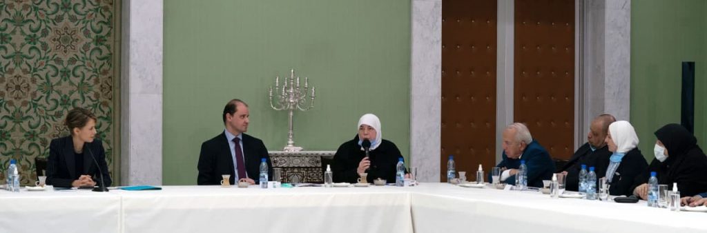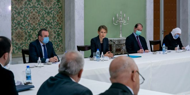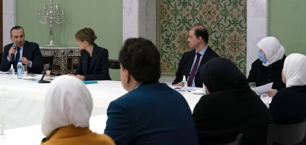 التقت السيدة أسماء الأسد اليوم عدداً من القائمين على الجمعيات الخيرية والمؤسسات الإنسانية ورؤساء غرف التجارة والصناعة من جميع المحافظات للبحث في تنظيم جهود الدعم والمساعدة للشرائح الأكثر احتياجاً وكيفية الاستفادة من عمل جميع المبادرات الخيرية والإنسانية بهدف إيصالها إلى مختلف المحتاجين في جميع المناطق السورية ولا سيما في ظل الظروف المعيشية الضاغطة، واقتراب حلول شهر رمضان المبارك.