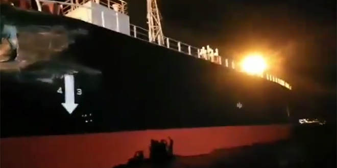 وأضاف باليلو لم يحدث أي تسرب للنفط في مياه البحر بعد اصطدام الناقلة بالسفينة وتسبب الحادث فقط بحدوث ثقوب في كلتا السفينتين.