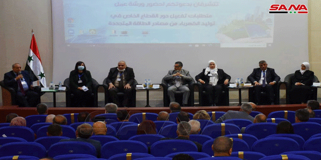وتضمنت الورشة عرضاً لفيلم عن مشاريع الطاقات المتجددة وجلسة حوار تناولت “دور وزارة الإدارة المحلية والبيئة في تفعيل فرص الاستثمار لمشاريع الطاقة المتجددة” و”فرص الاستثمار في قطاع الكهرباء” و”طرق تأمين التغذية الكهربائية للمدن الصناعية” و”محطات التوليد باستخدام السجيل الزيتي” و”تشجيع الاستثمار في الطاقات المتجددة” و”تعديل التشريعات ذات الصلة”.