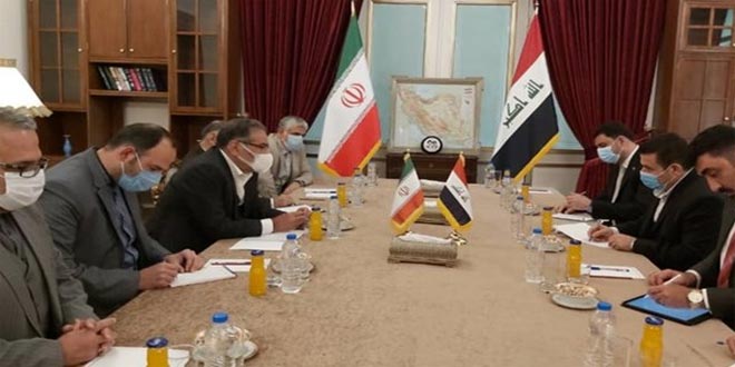 وأشار شمخاني إلى أن جريمة اغتيال قائد فيلق القدس بالحرس الثوري الإيراني ونائب رئيس هيئة الحشد الشعبي العراقي الشهيدين قاسم سليماني وأبو مهدي المهندس يكشف بوضوح الدور الأمريكي في دعم وتقوية الإرهاب التكفيري مؤكداً أن متابعة موضوع محاكمة المدبرين والمنفذين لهذه الجريمة الإرهابية وإنزال العقاب اللازم بهم من أولويات التعاون الأمني بين طهران وبغداد.