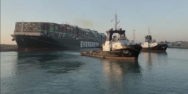 وعلقت (إيفر غيفن) البالغ طولها 400 متر وطاقتها الاستيعابية 224 ألف طن في الـ 23 من آذار الماضي في قناة السويس وسدت الممر المائي الذي يربط البحر المتوسط بالبحر الأحمر وتمر عبره نحو 12 بالمئة من التجارة البحرية العالمية.