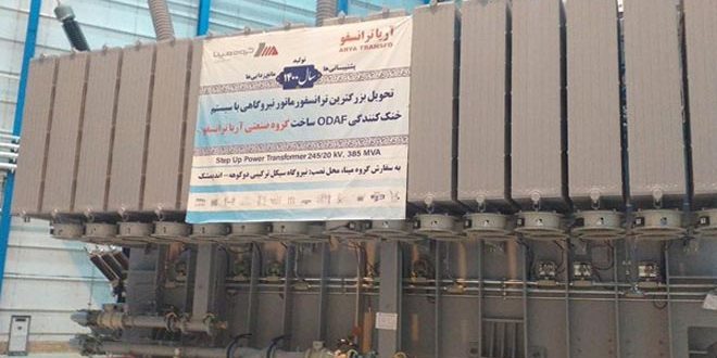 ونقلت وكالة أنباء فارس عن رئيس هيئة الإدارة في مجمع آرياترانسفو الصناعية فرج الله معماري قوله في تصريح للصحفيين “إن المحول الكهربائي الضخم صنع بسواعد وكفاءات كوادر المجمع المذكور وجهز بمنظومة تبريد” لافتاً الى أن طاقة المحول الذي اجتاز الاختبارات بنجاح تبلغ 385 ميغافولت أمبير وفولتيته تبلغ 245 كيلوفولت.