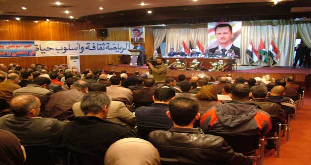 طالب أعضاء مؤتمر فرع الاتحاد الرياضي بدرعا خلال مؤتمرهم السنوي اليوم بتأمين مستلزمات الصالات الرياضية وتقديم الدعم المادي والفني للمدربين والرياضيين.