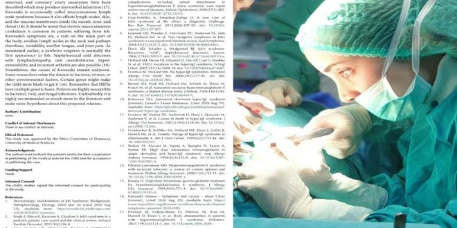 وقدم المقال الطبي الذي أشرف عليه اختصاصي أمراض الأنف والأذن والحنجرة بالمشفى الدكتور سامر محسن تفصيلاً دقيقاً عن التظاهرات السريرية والإجراءات الاستقصائية وكيفية التدبير مع تسليط الضوء ولأول مرة في الأدب الطبي على علاقة محتملة بين متلازمة جوب وداء كاوازاكي.