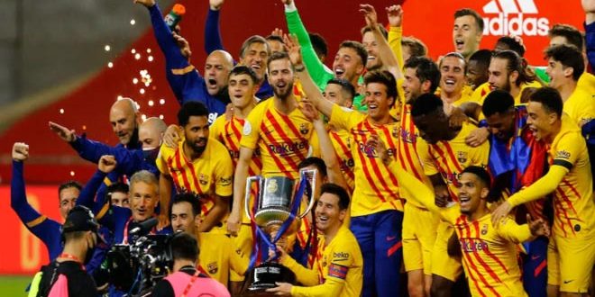 حصد نادي برشلونة أول لقب له هذا الموسم بفوزه الساحق على أتلتيك بيلباو برباعية نظيفة مساء اليوم في نهائي بطولة كأس ملك إسبانيا.