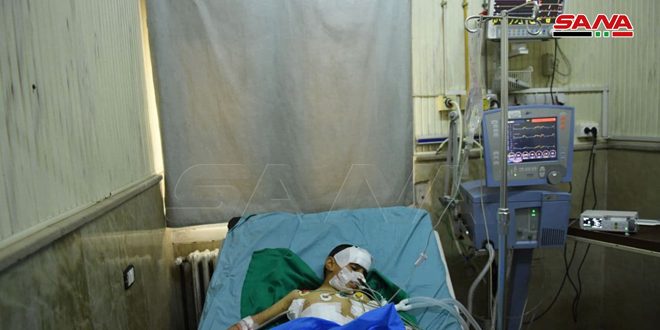 أصيب خمسة مدنيين بينهم طفل ووالدته اليوم جراء انفجار عبوة ناسفة من مخلفات التنظيمات الإرهابية في حي مساكن هنانو بمدينة حلب.
