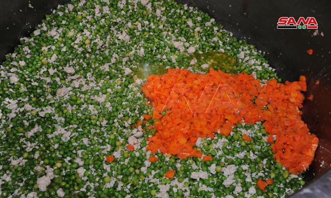 ويبدأ عمل المتطوعين يومياً الساعة العاشرة صباحاً وفقاً للمتطوعة سلام الأحمد ويستمر حتى السادسة مساء عبر مراحل تكون أولها تنظيف الخضراوات وتقطيعها وتجهيزها للطبخ عبر فرق ملتزمة بارتداء الكمامات والقفازات والطواقي مشيرة إلى أهمية العمل التطوعي لدى فئات الشباب وتحفيز حس المسؤولية لديهم لمساعدة الآخرين ورغم الساعات الطويلة والعمل تحت أشعة الشمس يجد المتطوع علي سعيد راحته بوصول الوجبة إلى الفئة المستهدفة وتأدية مهمته على أكمل وجه لافتاً إلى ضرورة تكاتف الجميع خلال الظروف الصعبة التي يمر بها البلد وقال سعيد: “عندما يكون جاري بخير أنا بكون بخير” وهذا سبب كاف لمنح الكثير من وقتي وجهدي لتقديم المساعدة للأشخاص المحتاجة.